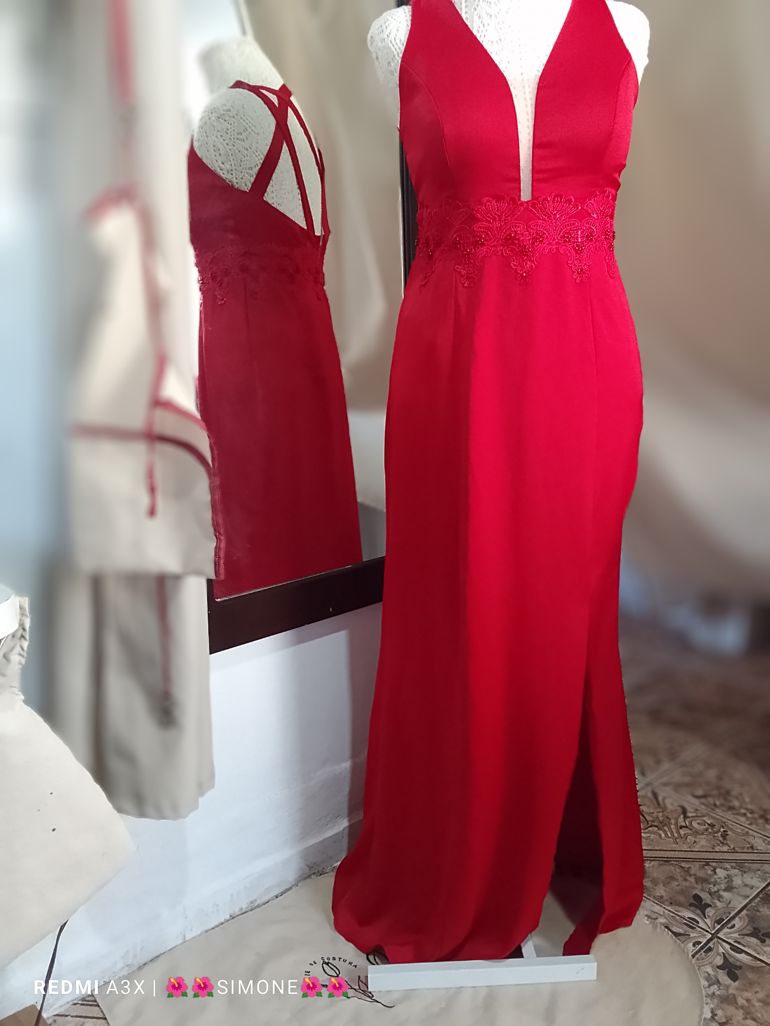 Vestido usado uma vez, tamanho G,uma fenda lateral, detalhe de renda na cintura e alça transpassada na parte de trás. Eu tenho 1,69 de altura e 73 kilos