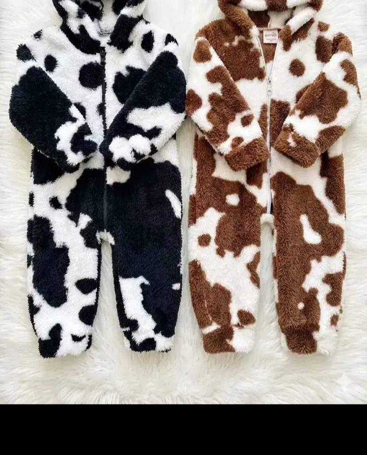 Lindos macacões de bebê com estampa de vaca! Super macios e confortáveis, perfeitos para o inverno. Disponível em marrom e preto. Estado: Novo. Tecido peluciado.