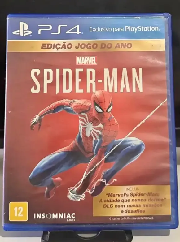 Jogo Spider-Man para PS4, Edição Jogo do Ano com DLC incluso. Em bom estado de conservação, conforme fotos. Aproveite essa aventura aracnídea!