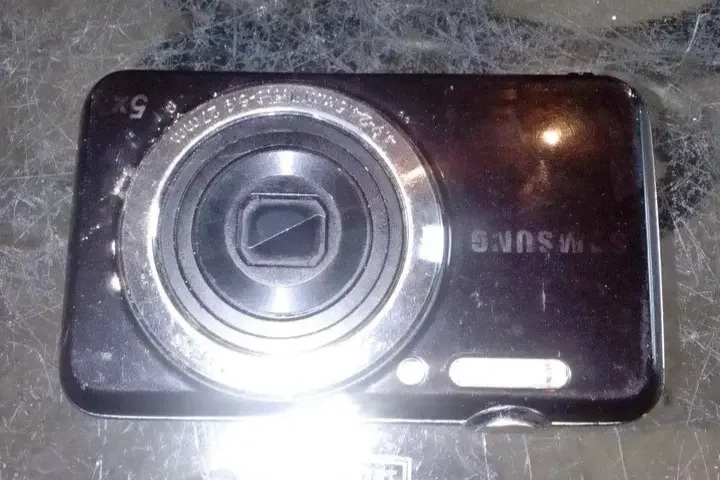 Câmera digital compacta Samsung, zoom 5x, cor preta. Ideal para quem quer registrar momentos sem precisar de um celular. Possui alguns sinais de uso, mas funciona perfeitamente. Veja as fotos!
