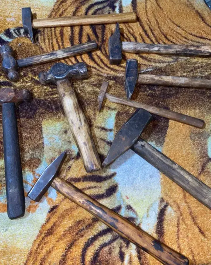 Lote com diversos martelos antigos, em bom estado de conservação. Alguns com cabo de madeira escurecido pelo tempo. Ideal para colecionadores ou para uso em trabalhos manuais. Troco por algo do meu interesse!
