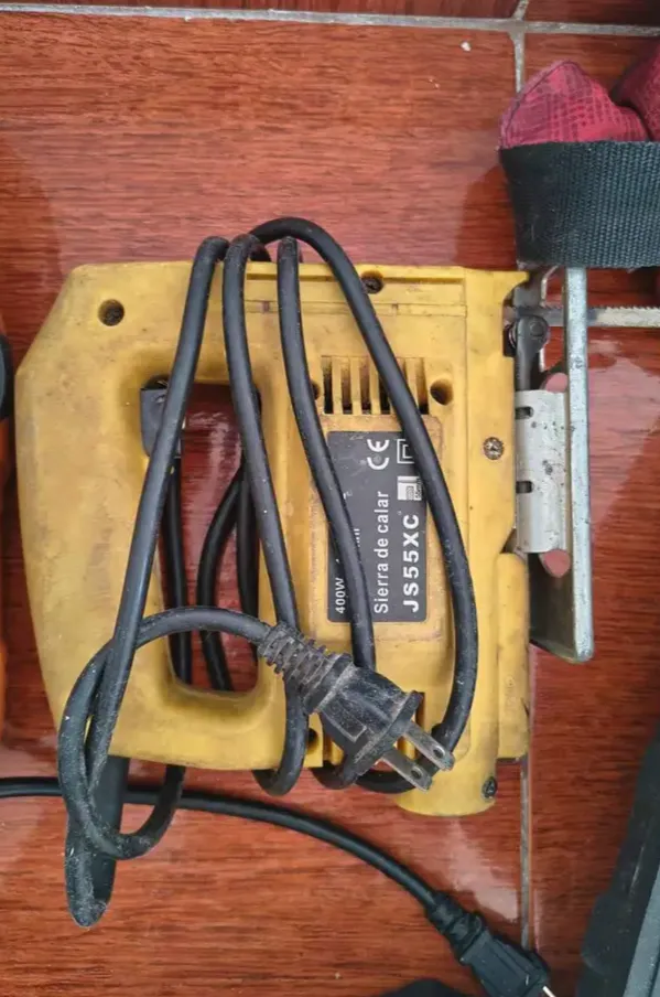 Serra tico-tico amarela, modelo JS55XC, 400W. Usada, com marcas de uso visíveis.