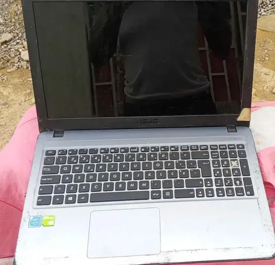 Notebook Asus, usado, mas funcionando perfeitamente. Possui marcas de uso como mostram as fotos, ideal para quem busca um computador para tarefas básicas e não se importa com a estética. Teclado ABNT2.