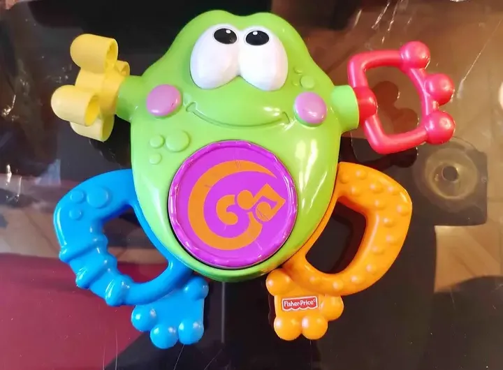 Sapinho musical da Fisher-Price em bom estado. Cores vibrantes (verde, rosa, laranja, azul e amarelo). Ideal para entreter e estimular o bebê.