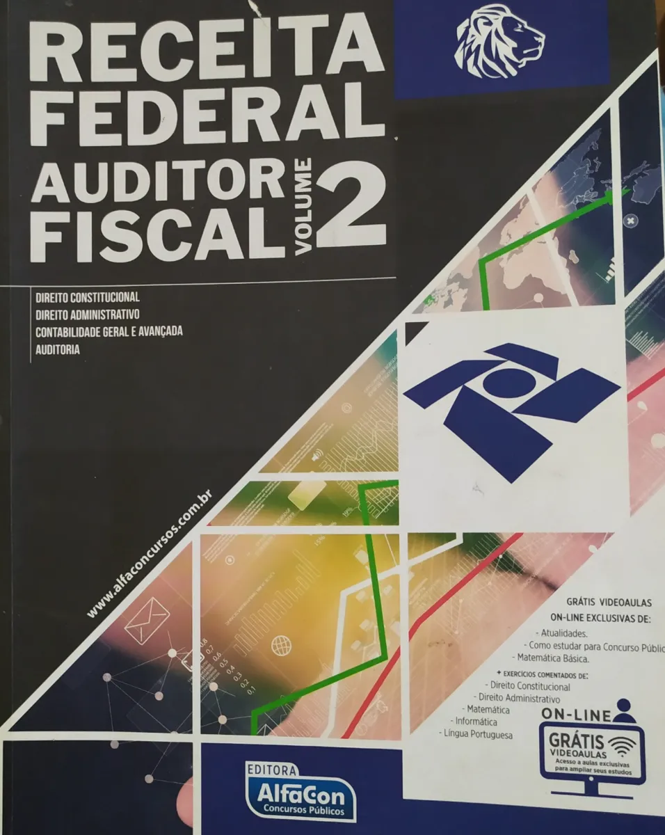 Livro preparatório para o concurso da Receita Federal, Auditor Fiscal. Volume 2. Aborda Direito Constitucional, Administrativo, Contabilidade e Auditoria.