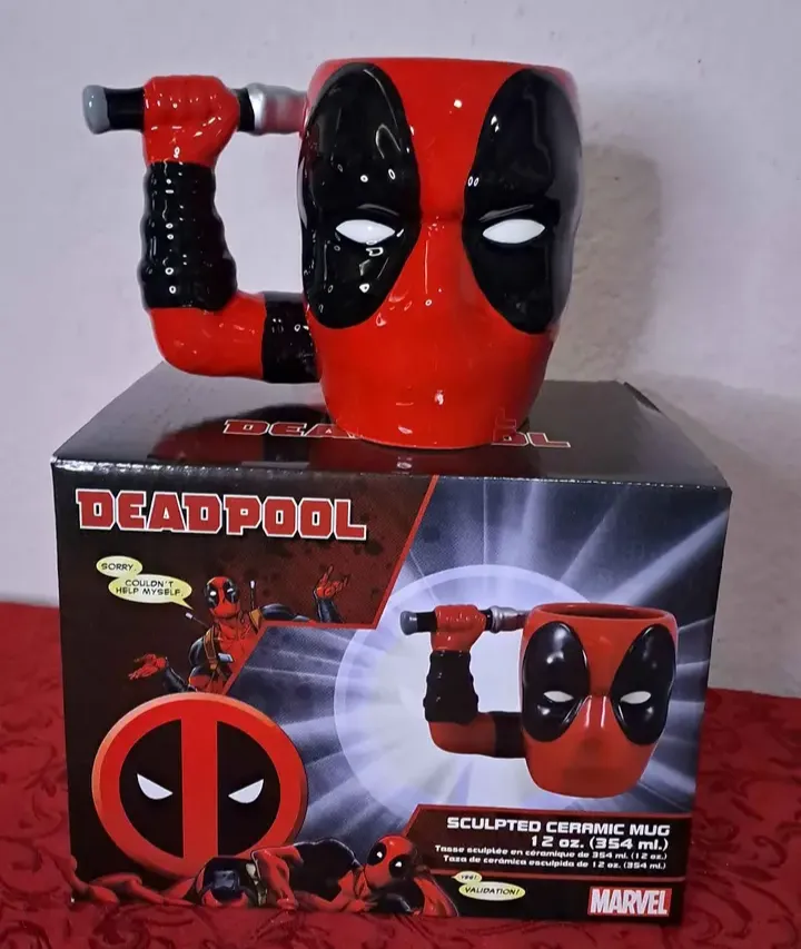 Caneca esculpida em cerâmica do Deadpool, 12oz (354ml). Produto novo na caixa original Marvel, perfeita para colecionadores e fãs do mercenário tagarela! Design impecável e pintura vibrante.
