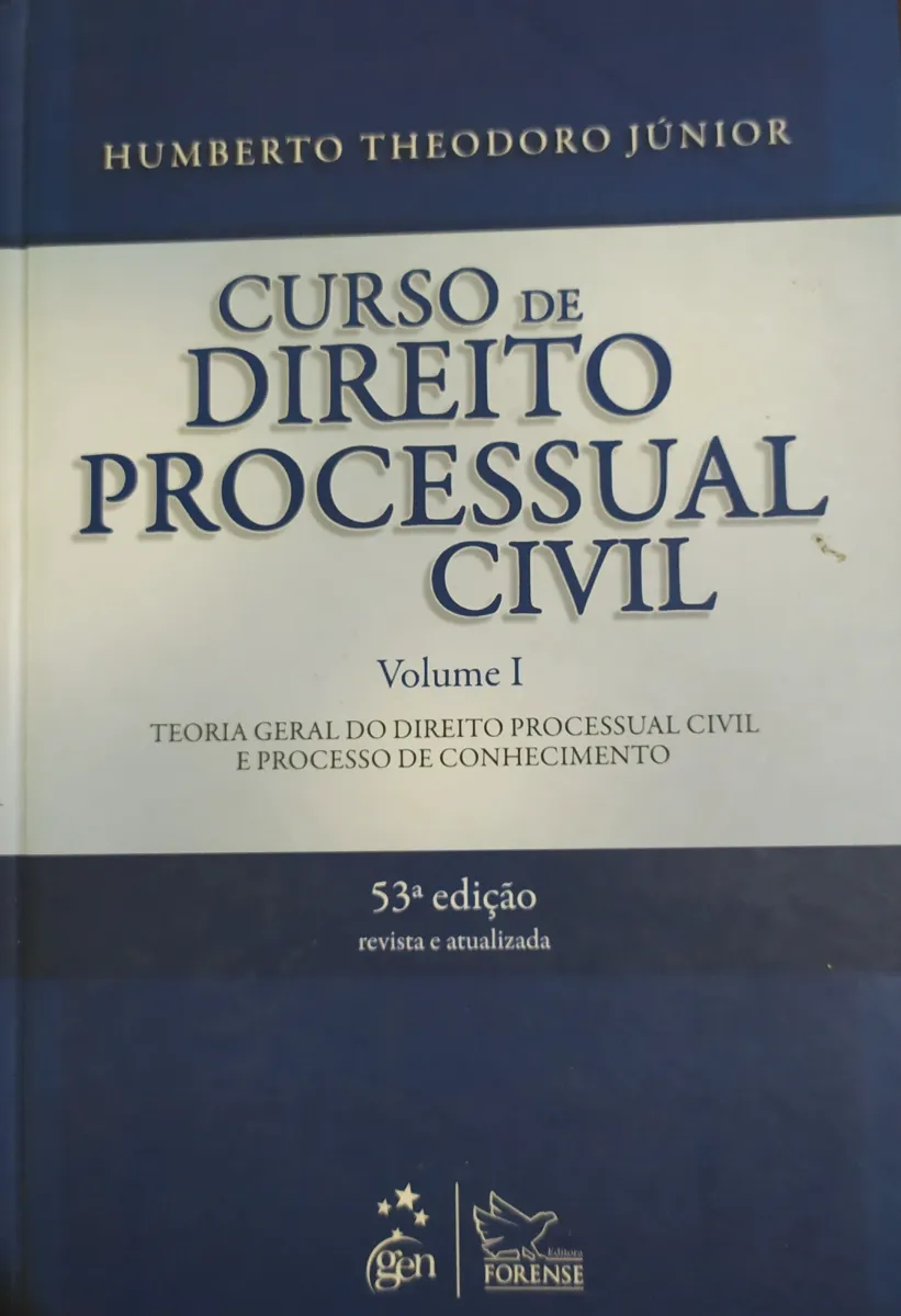 Livro de Direito Processual Civil, Volume 1, 53ª edição. Capa azul e branca, em bom estado.