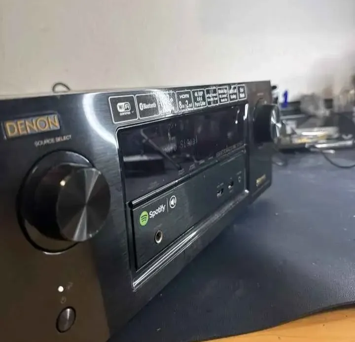 Receiver Denon preto, em excelente estado de conservação e funcionamento. Com suporte a Spotify e diversas conexões. Ideal para turbinar seu som!