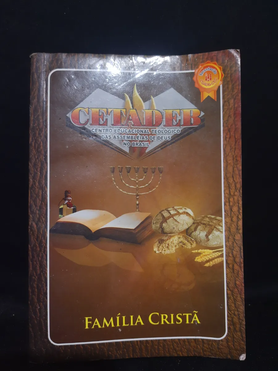 Livro Família Cristã, CETADDEL, em bom estado de conservação. Capa marrom com ilustração de pães e menorah. Ideal para estudos teológicos.
