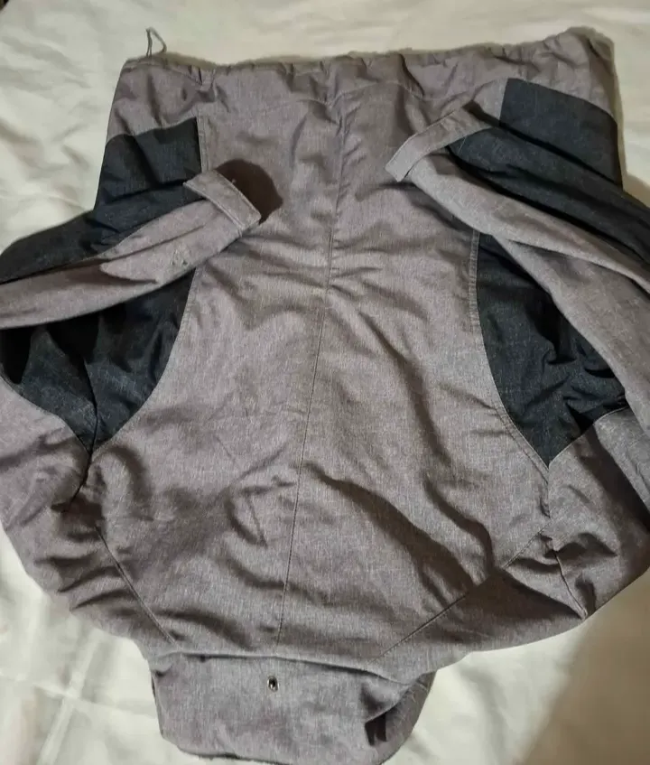 Jaqueta impermeável em ótimo estado, cor cinza com detalhes em preto. Ideal para dias frios e chuvosos. Confortável e estilosa.
