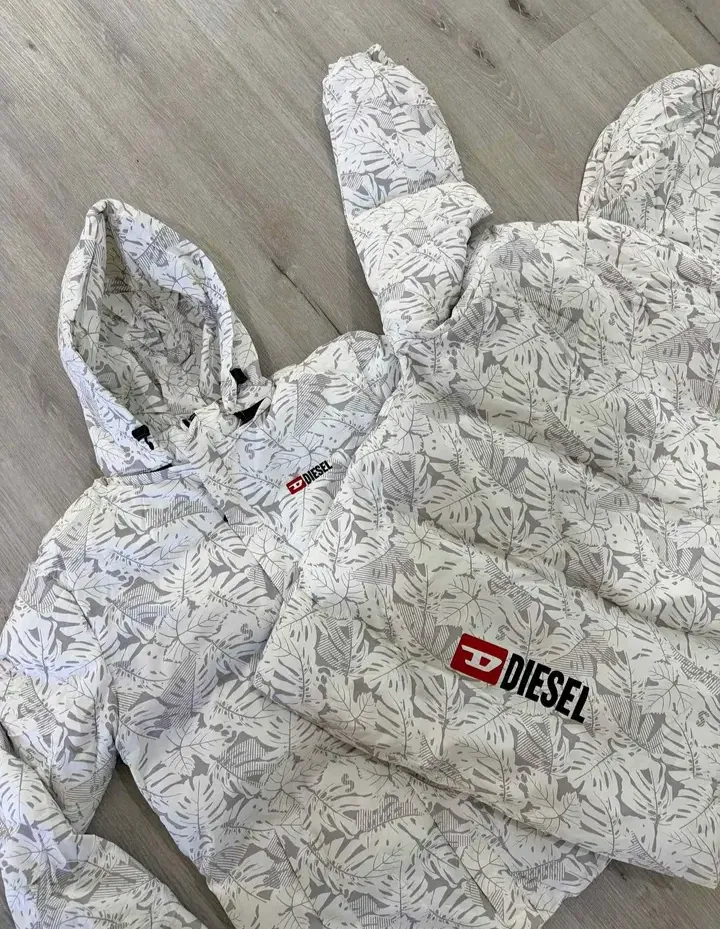 Jaqueta Diesel com estampa de folhagens em tons de branco e cinza. Quentinha e estilosa, perfeita para o dia a dia. Em ótimo estado!