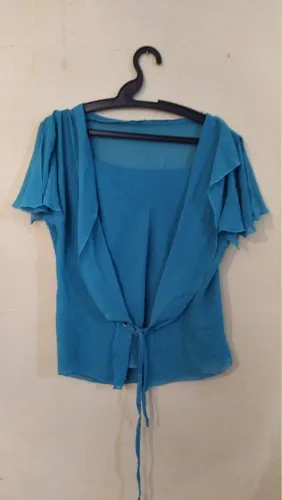 Conjunto de blusa e saia midi azul. Tamanho M. Em ótimo estado de conservação. Foi usada somente uma vez.