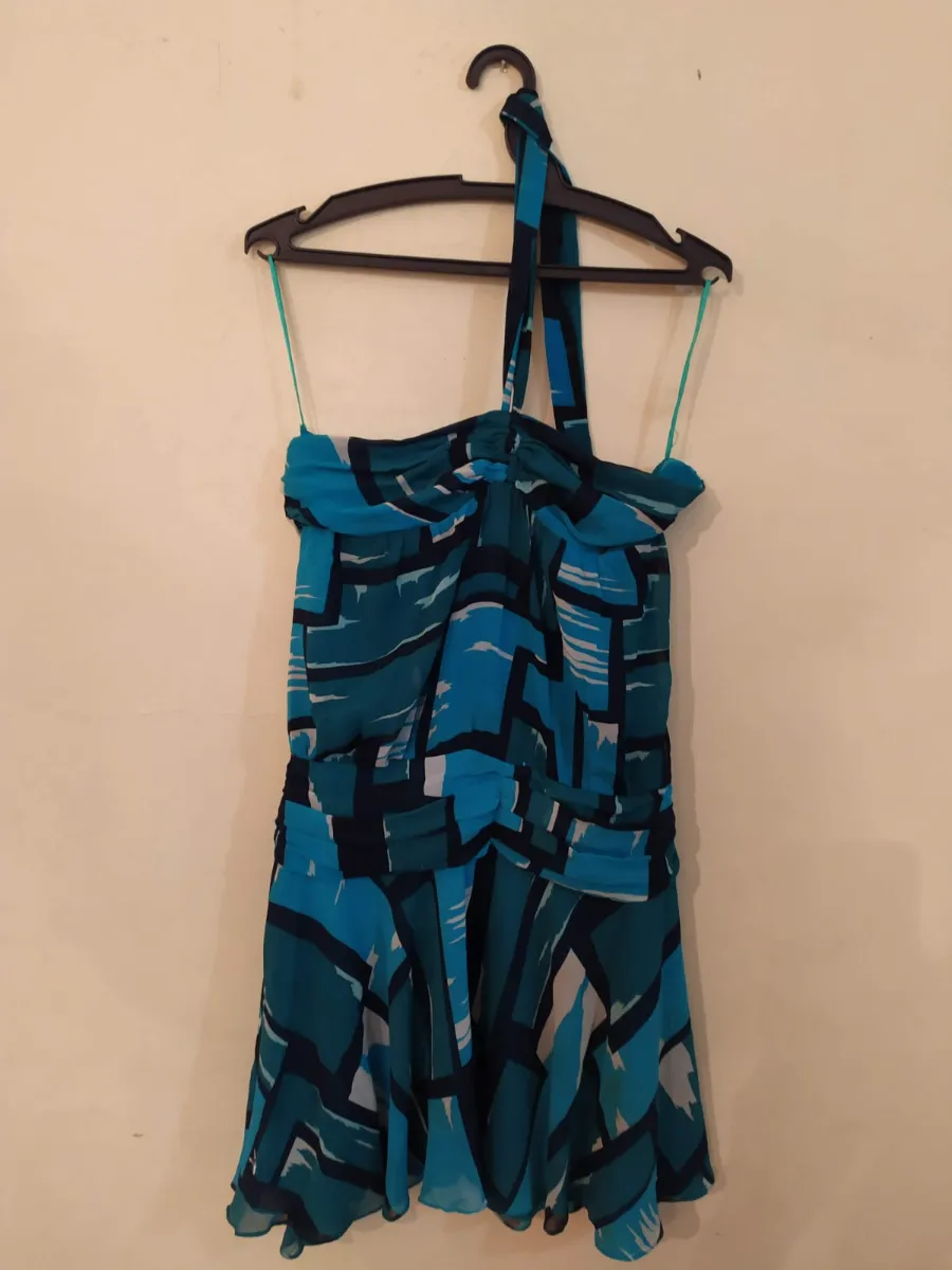 Vestido estampado em tons de azul e verde (tamanho 38). Tecido esvoaçante, tipo voil.