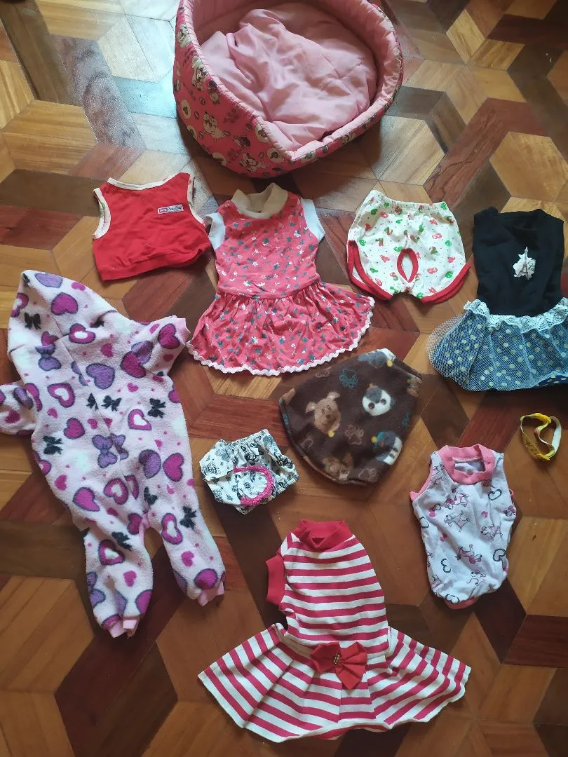 Várias roupinhas de cadelinha pequena estatura