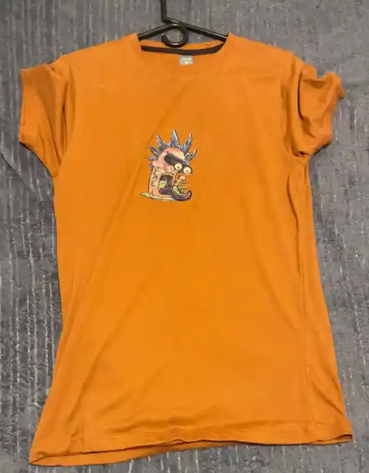 Camiseta laranja com estampa do Morty em versão punk. Bom estado.