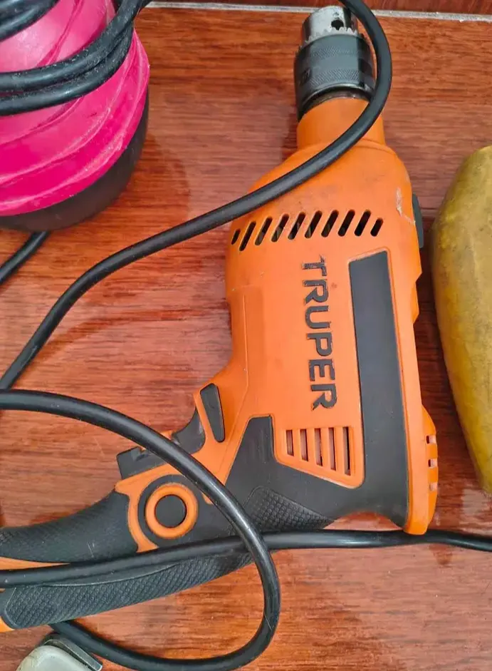 Furadeira Truper, cor laranja com detalhes em preto. Usada, mas em bom estado de funcionamento.