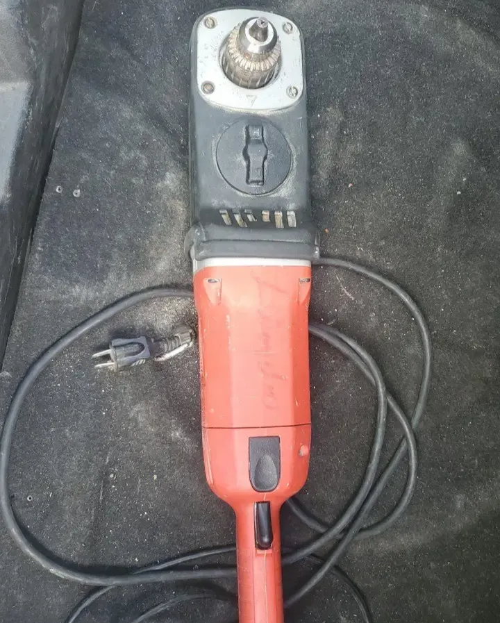 Furadeira de ângulo da marca Danfoss, usada mas funcionando perfeitamente. Possui marcas de uso (vermelha com detalhes pretos), ideal para trabalhos em espaços confinados. Cabo em bom estado.