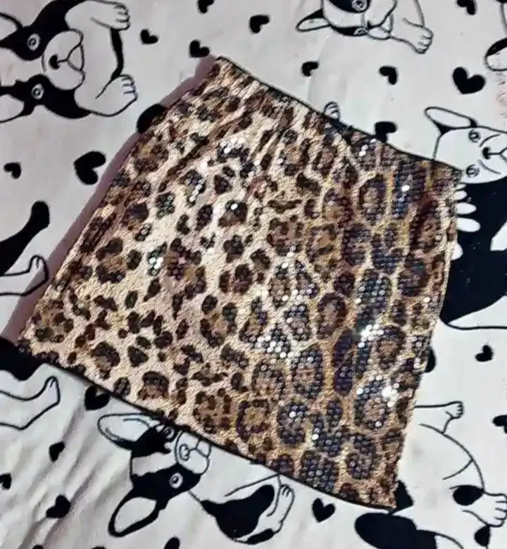 Linda mini saia com estampa de animal print e detalhes em paetê brilhante. Em ótimo estado, ideal para arrasar na balada ou em looks fashionistas. Possui elástico na cintura para melhor ajuste.