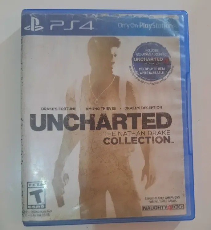 Jogo Uncharted: The Nathan Drake Collection para PS4. Capa com marcas de uso, mas disco em perfeito estado. Inclui os três primeiros jogos da franquia Uncharted. Aproveite!