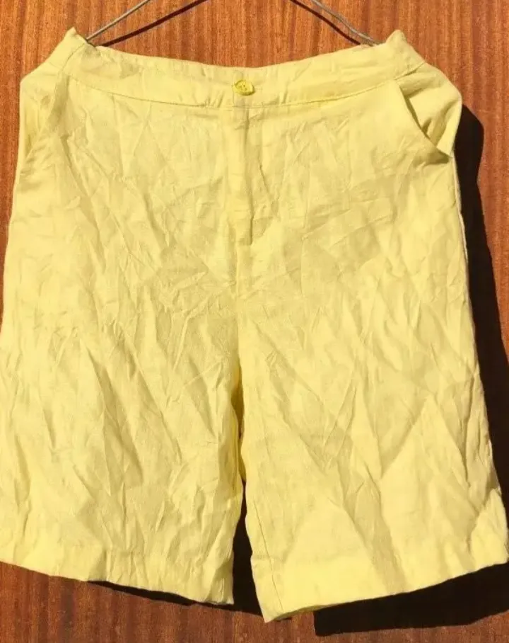 Shorts feminino amarelo claro em bom estado. Possui botão frontal e bolsos laterais. Ideal para um look casual e confortável. Tamanho veste P/M.