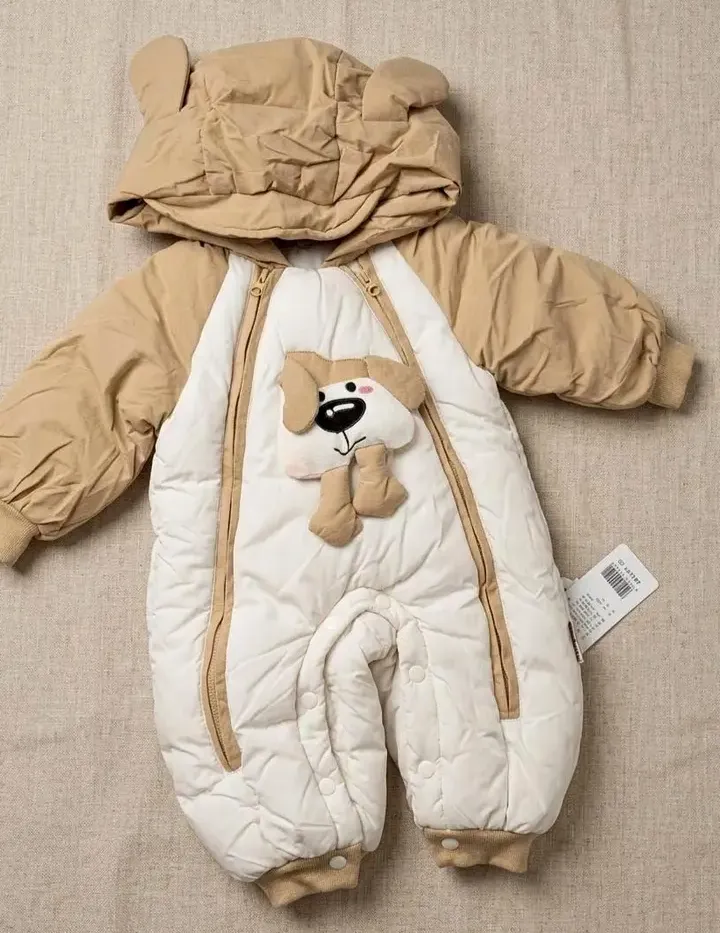 Lindo macacão de bebê, estilo ursinho, perfeito para o inverno! Novo, nunca usado, com detalhes em marrom e branco. Quentinho e super fofo.